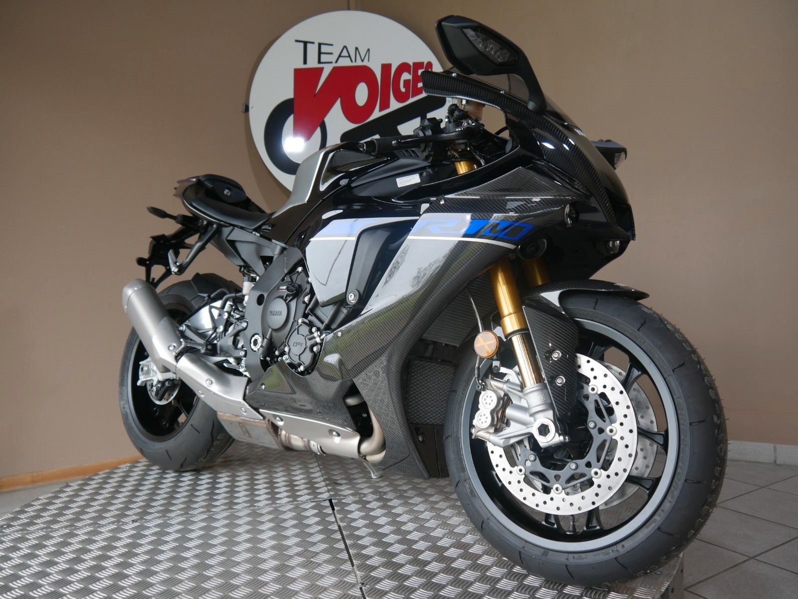 Deutsches Neufahrzeug Yamaha YZF-R1M mit Seriennummer 3642 in der Farbe SMX (Black Metallic X) Modelljahr 2024 mit Ausnahmegenehmigung zur Zulassung