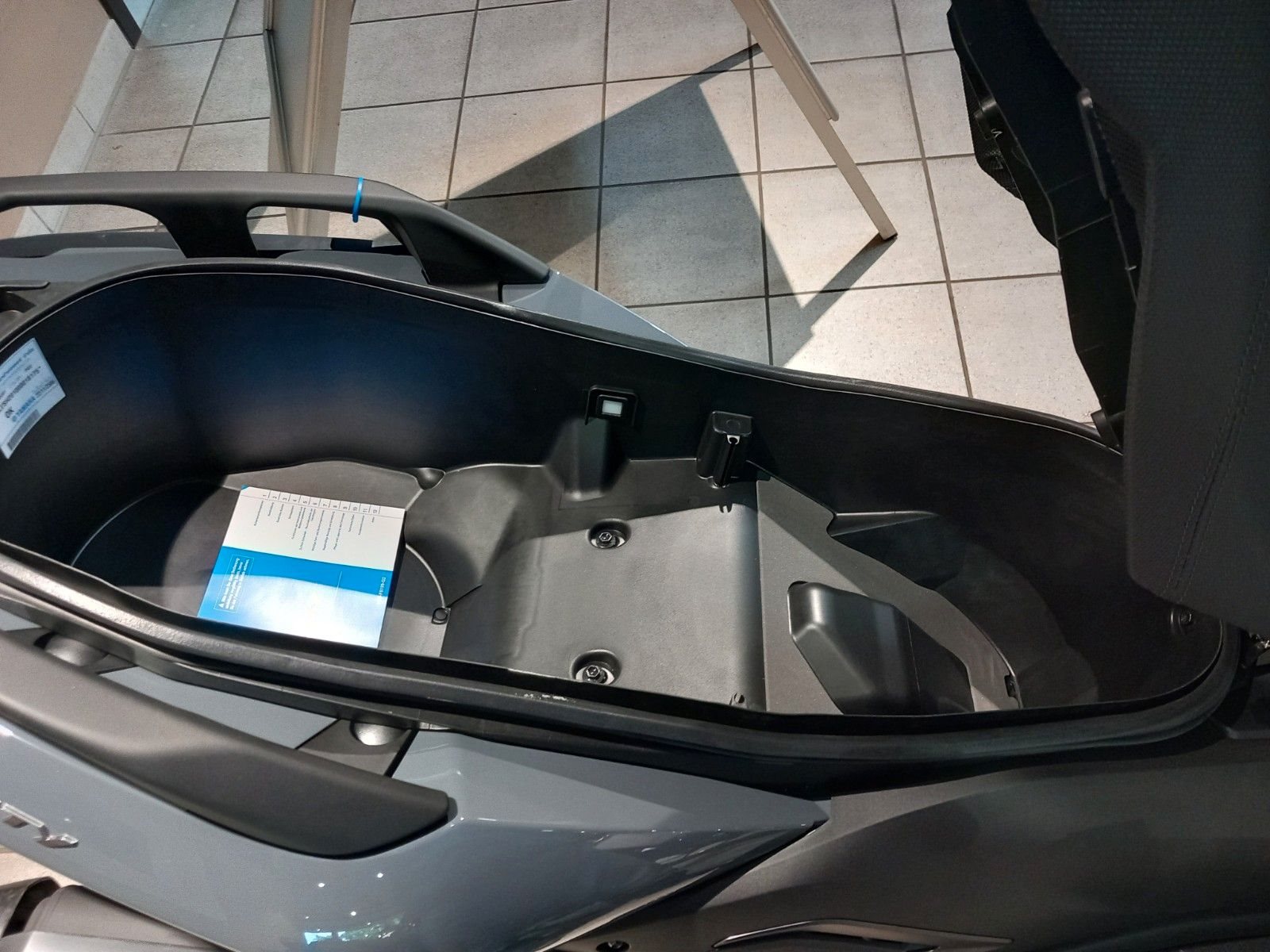 Das riesige Staufach nimmt 2 Helme oder den Großeinkauf auf. Die breite Sitzbank läßt auch 2 Personen genug Platz für eine bequeme Fahrt. Feststell- und Fußbremse sind mit an Bord.